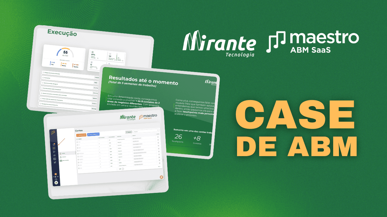 O Maestro é um Software como serviço (SaaS) focado na metodologia de Marketing Baseado em Contas (ABM) para ajudar as empresas nas vendas complexas para empresas B2B. Na plataforma, você irá construir uma sinergia entre Marketing e Vendas para cada estratégia de contas, criando pontos de contato personalizados, com acesso a uma biblioteca de playbooks e modelos que poderá medir e orquestrar para reduzir o ciclo de vendas. É o melhor investimento em inovação que a sua empresa precisa para capacitar e desenvolver as pessoas nas vendas complexas. Agregando conhecimento para tornar o processo maduro no modelo de vendas previsível, escalável e sustentável