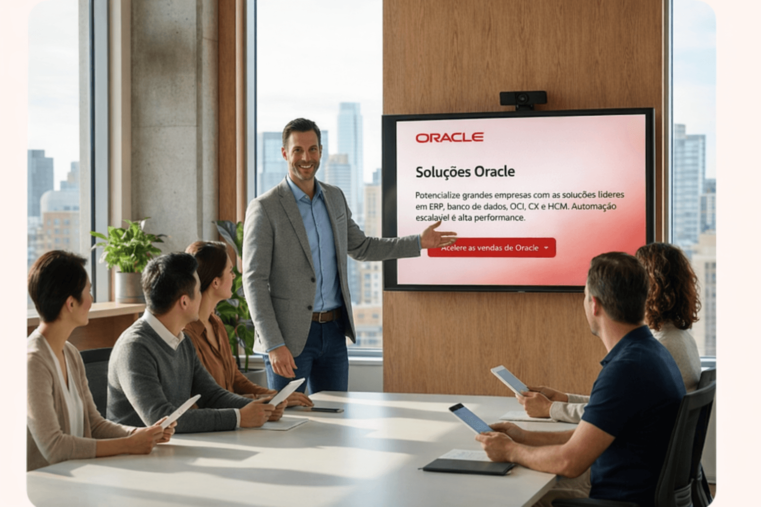 Diagnósticos e materiais executivos que conectam dor, impacto e solução Oracle. A proposta vira consequência.