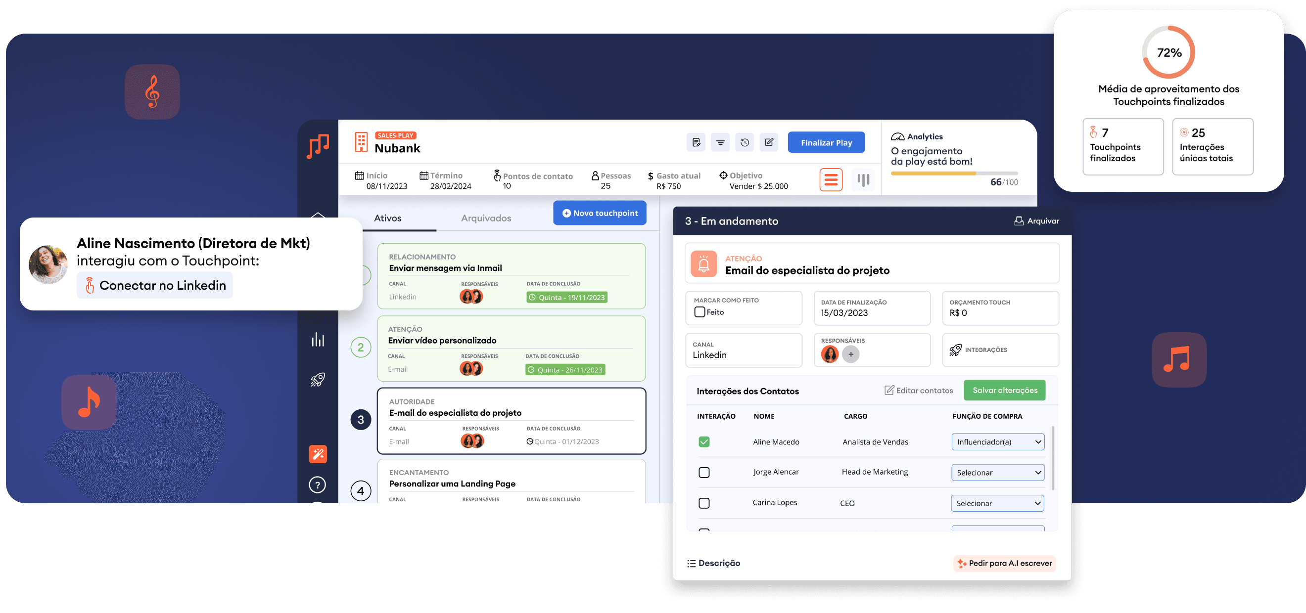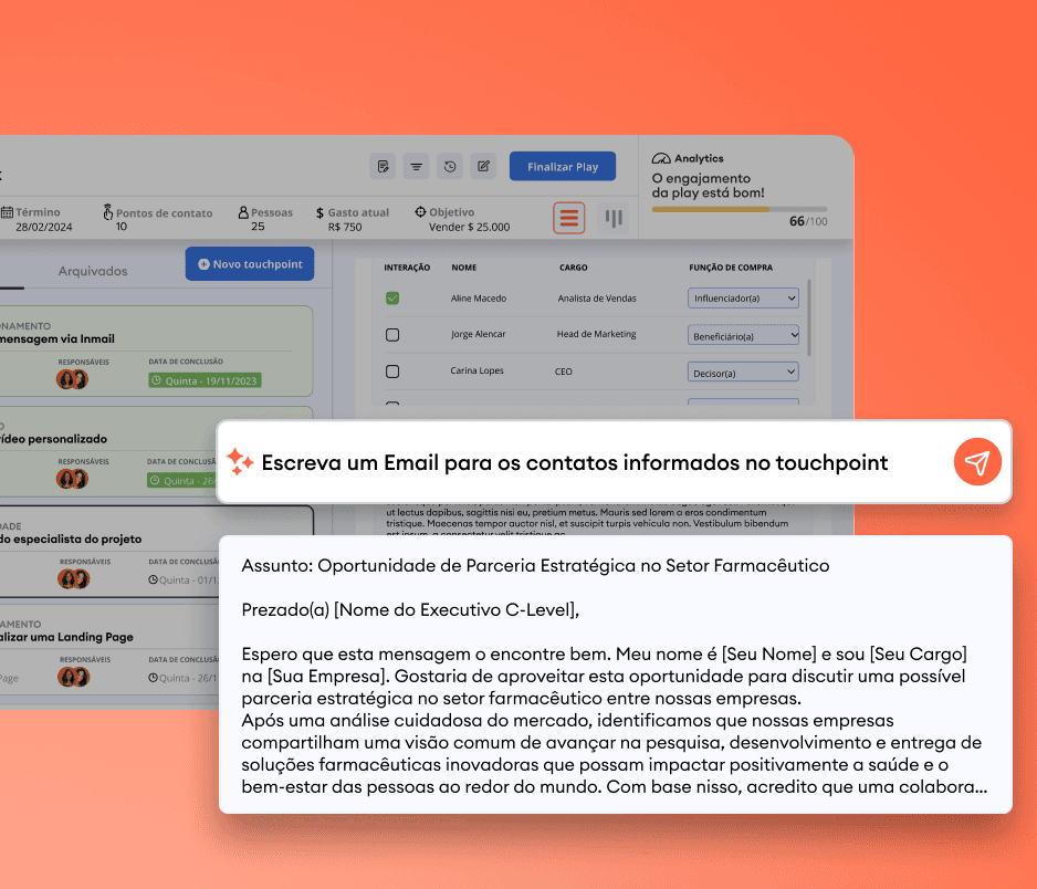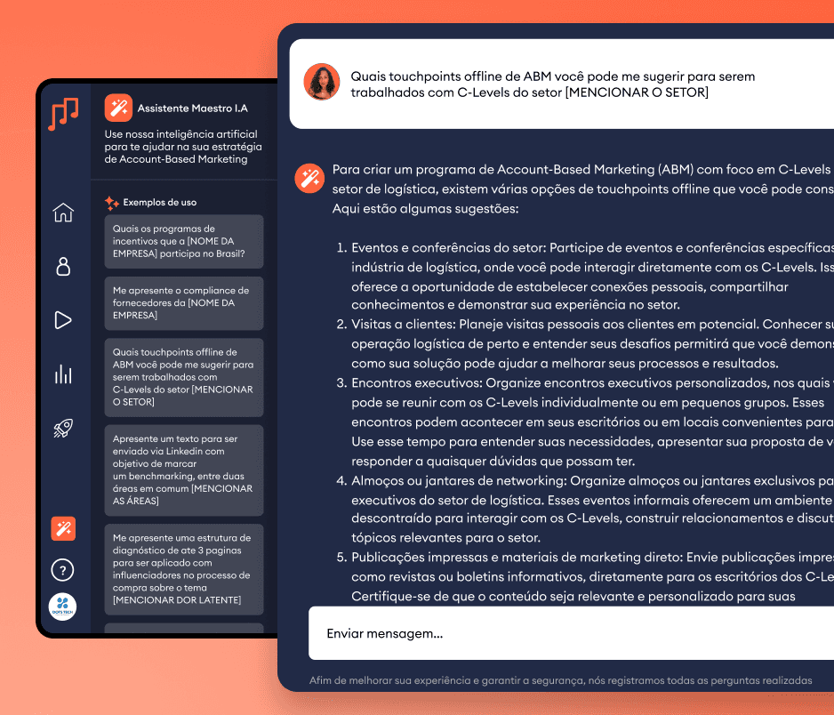 Além de auxiliar na criação dos conteúdos dos Touchpoints, a integração com o ChatGPT, por meio do Assistente Maestro, permite que você encontre sugestões de conteúdos e mensagens personalizadas para as contas-alvo.
